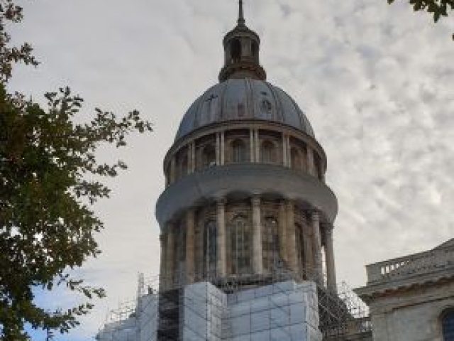 Ce sont 410 tonnes d’échafaudages de la gamme Layher Universel qui ont été installées sur tout le pourtour du bâtiment, sur une hauteur de 54 m jusqu’à la base du dôme ainsi que le pourtour du lanternon qui culmine à 82m.